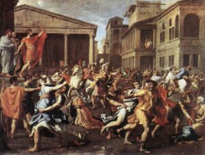 Si tratta di un episodio leggendario, impossibile da ricostruire pienamente, ma di cui possediamo immagini storiche e artistiche. Abbiamo racconti che lo definiscono un grande momento fondatore; abbiamo dipinti e sculture che lo raffigurano come un mito eroico. La realtà storica ci parla invece di un passato in cui la violenza era sinonimo di potere. Questo episodio, celebrato come eroico, è la prova di quanto fosse necessario ribadire il dominio maschile. Tale narrazione veniva addirittura replicata nella cerimonia matrimoniale romana: la sposa veniva simbolicamente “rapita” e strappata alla famiglia per entrare sotto la patria potestas del marito, reinterpretando il ratto delle Sabine.
